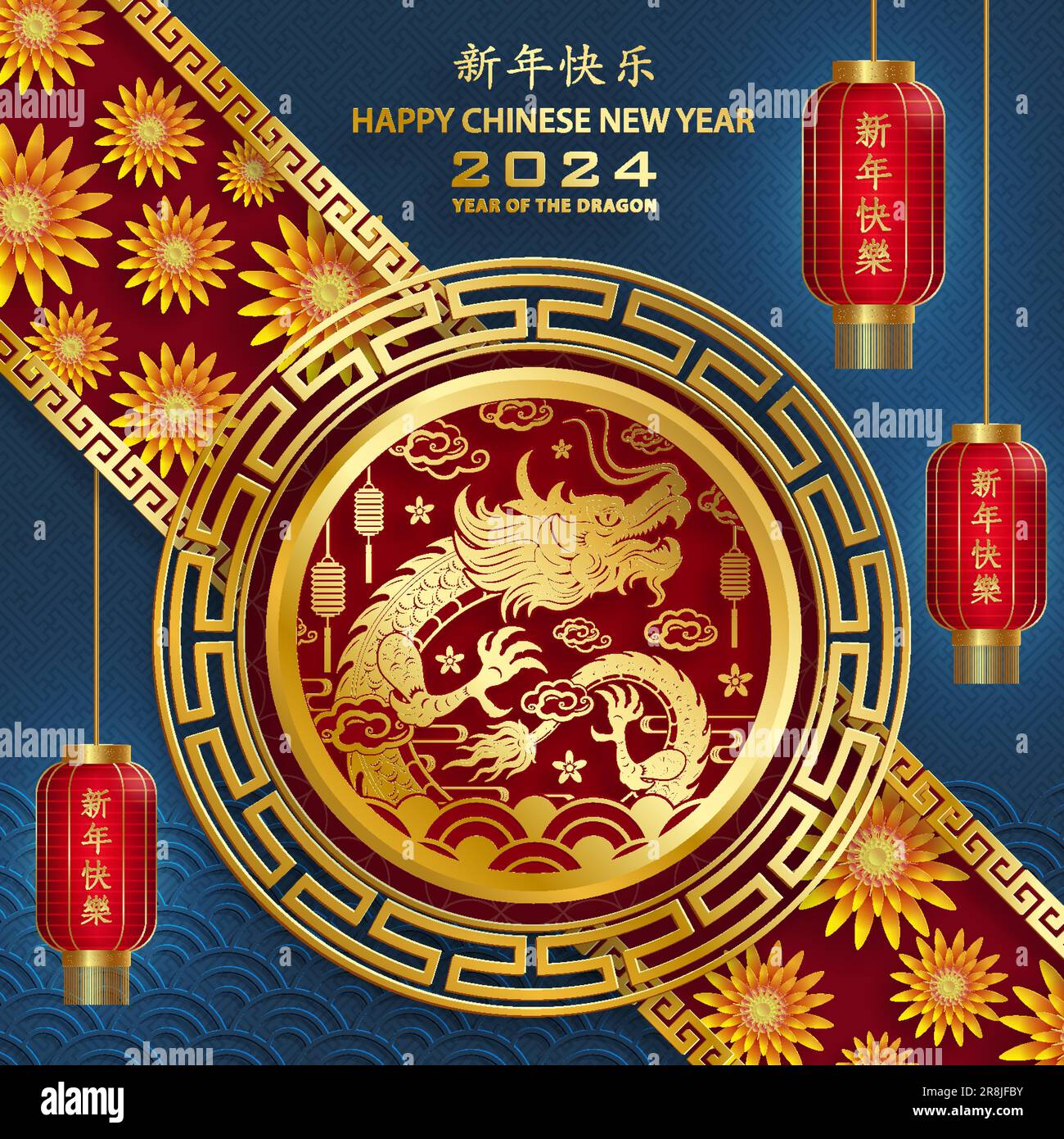 Happy Chinese new year 2025 Dragon Zodiac sign, with gold paper